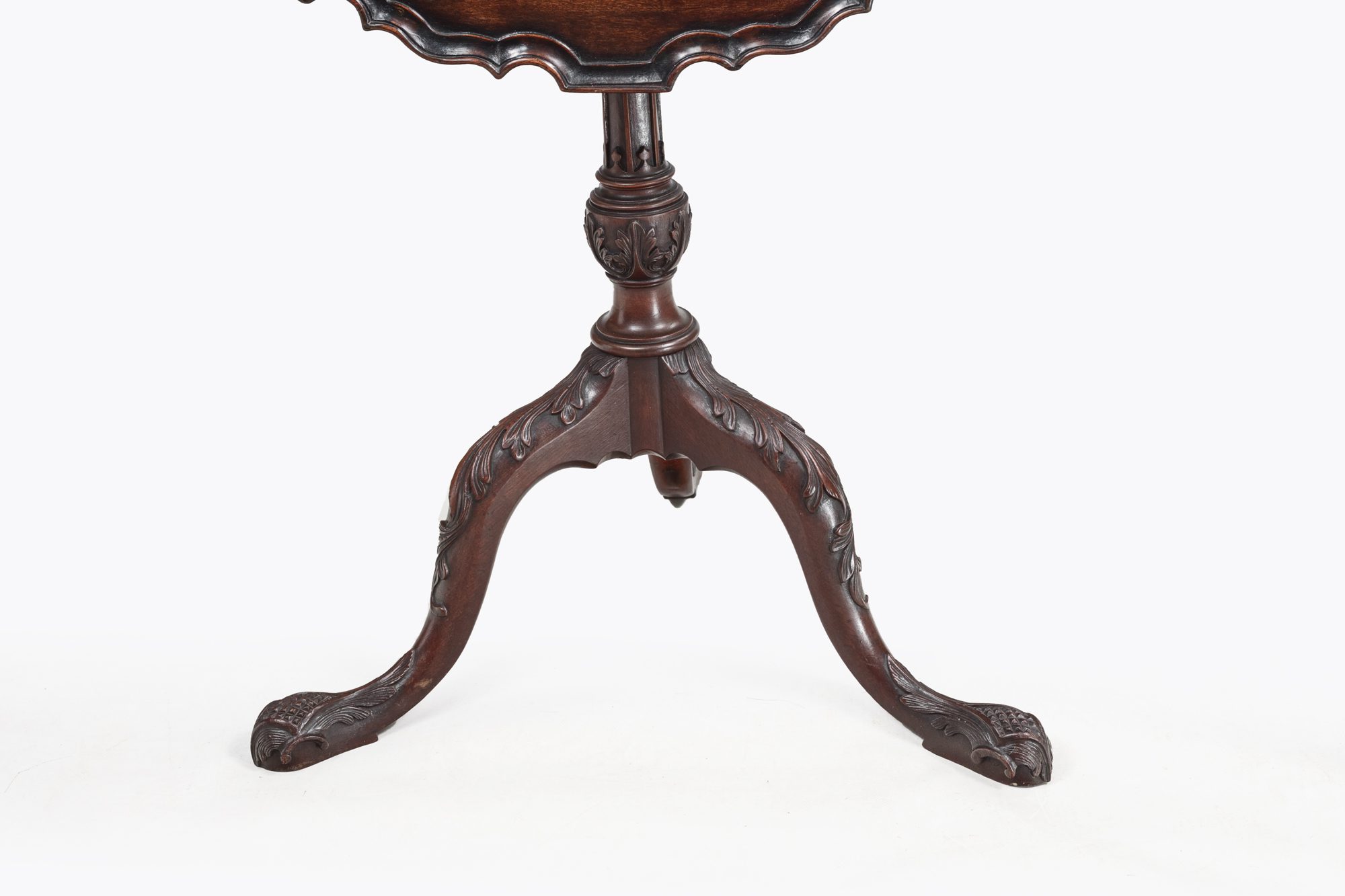 19th Century mahogany tip up occasional table with circular piecrust top supported by an ornately carved tripod base with acanthus leaf detail to knees.