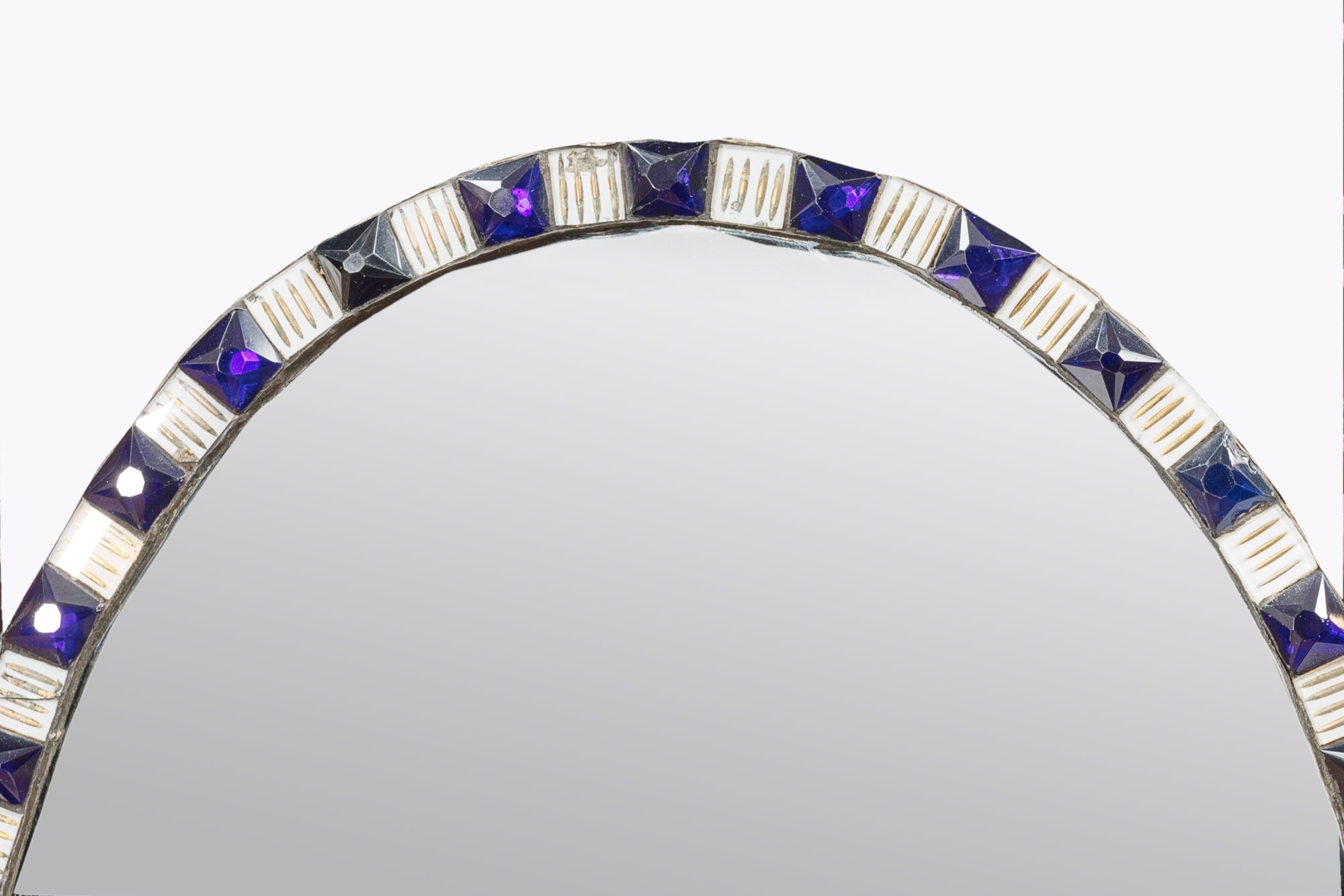 18th Century Irish Waterford mirror of unusual large size, complete with period plate of oval form and decorative bevelling to the outer edge. The mirror is set within a frame of alternating faceted blue and clear glass studs.