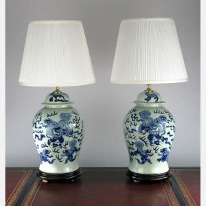 3032 – Pair of Chinese Blue and White Porcelain Vases, Wired as Lamps